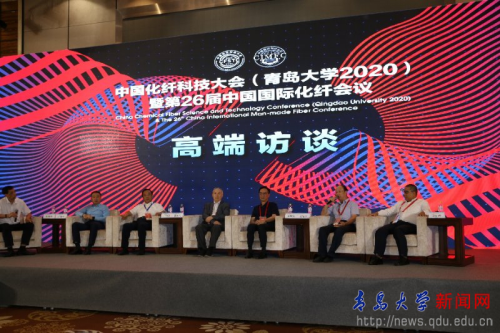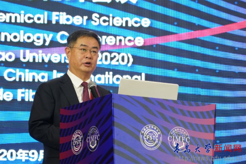 2020)暨第26届中国国际化纤会议在青岛顺利召开。校长夏东伟,校党委常委、副校长于永明出席会议开幕式,夏东伟致欢迎辞。开幕式由中国纺织工业联合会副会长、化学纤维工业协会会长端小平主持。