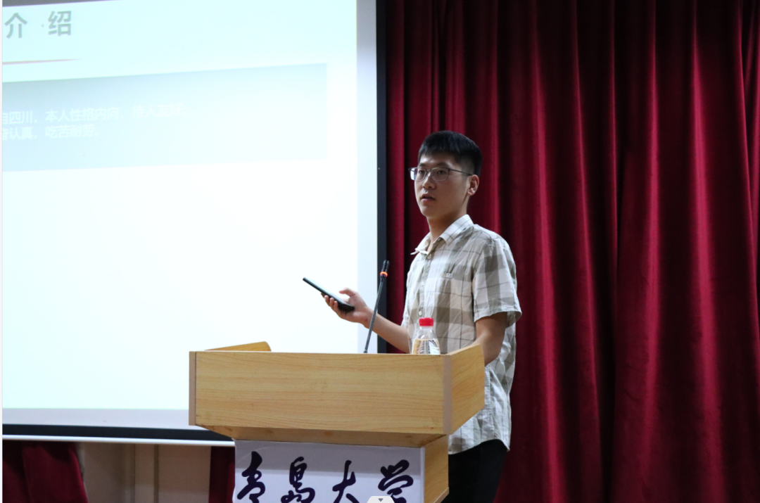 大会第三项,由第九届学生会主席商帅琦发言。商帅琦首先对2023级各位同学的加入表示诚挚的祝贺与欢迎,并对已经工作了一年的2022级同学表示肯定,最后对第九届学生会提出四点要求,力求新一届学生会能够团结一致、齐心协力、服务同学、做出成绩、创造辉煌。