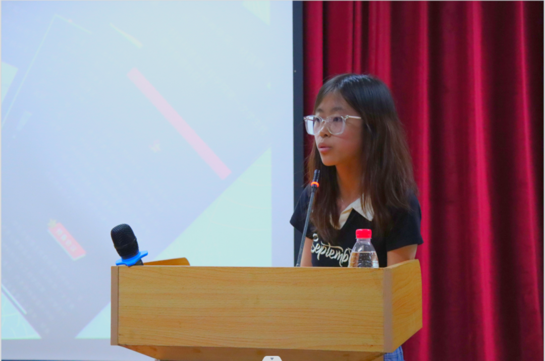 大会第四项,由2023级新生志愿者代表孙一诺发言。孙一诺向全体成员分享了对学生会、学生工作以及如何开展工作的认识和感受,并代表新生志愿者表明决心:时刻牢记自己的职责,明确责任分工,协助部长团、主席团做好工作,希望新一届学生会在新生志愿者的加入下更好的为老师和同学们服务。