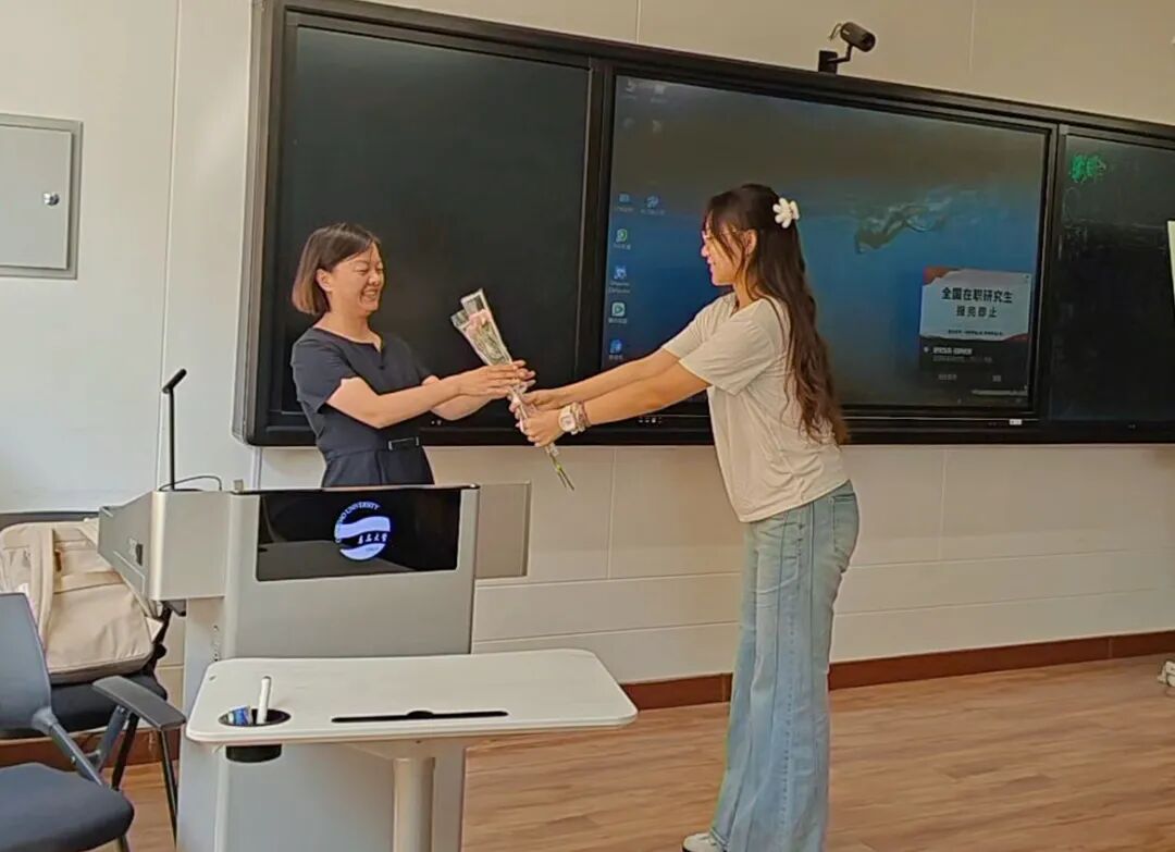 鲜花传情,祝福暖心。同学们在课前将一束束象征尊敬与感激的康乃馨,亲手送予授课教师,感谢他们深耕教育、辛勤奉献,以德立教、以爱育人的点滴付出,也让这个教师节的课堂别具意义。
