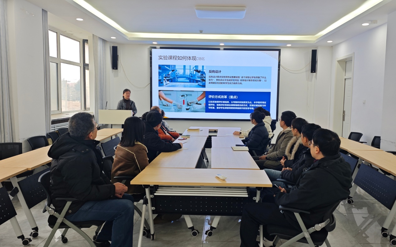 在专业认证引领方面,教师们重点探讨了如何将实验课程目标与高分子、复合材料及智能材料专业的毕业要求指标点精准对接,完善基于证据的课程达成度评价机制。大家一致认为,实验教学不仅要让学生掌握材料合成、加工及表征的基本技能,更要通过设计性、综合性实验项目,培养学生的复杂工程问题解决能力和创新思维,切实支撑专业认证所要求的核心能力培养。