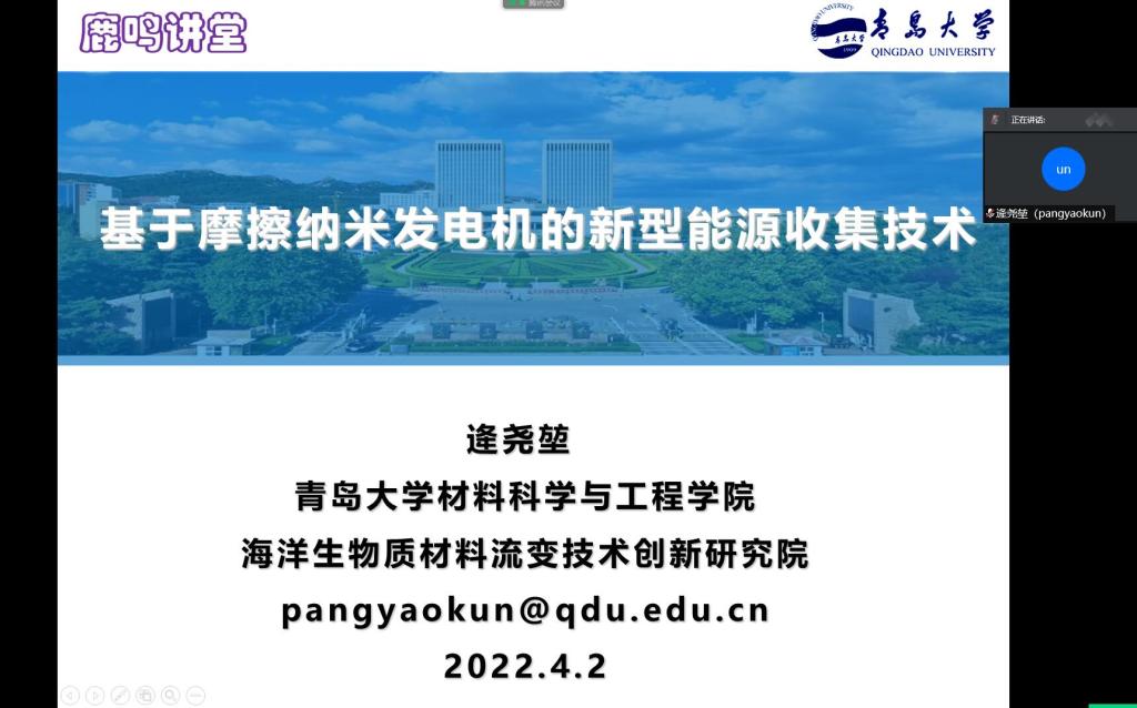 青年学者促进会在腾讯会议上举办《基于摩擦纳米发电机的新型能源收集技术》主题学术报告。本次学术报告由张克伟教授主持,九色